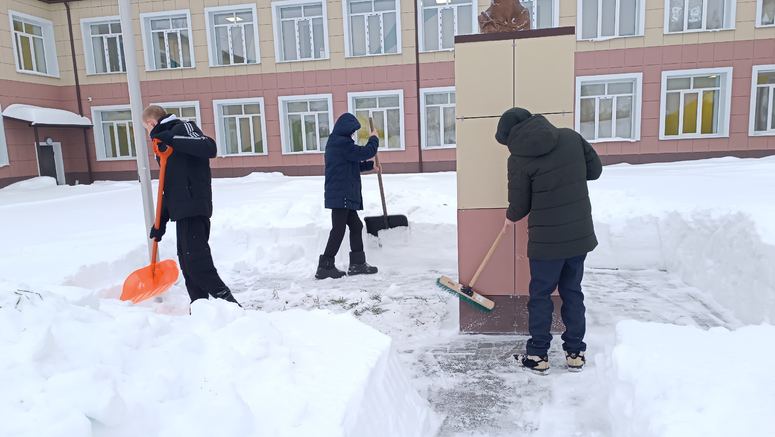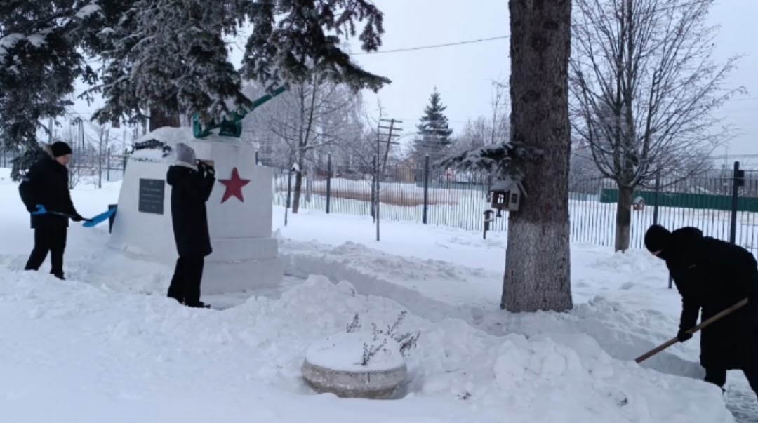 Это было непросто: снег укрыл монументы толстым слоем, но трудолюбие школьников позволило быстро привести мемориалы в порядок, и теперь они вновь стоят величественно и гордо среди белоснежного пейзажа.