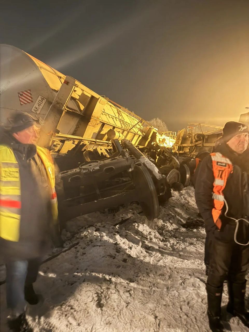 Вчера, 21.01.2026, в 21 час 56 минут при следовании грузового поезда № 3141 по первому пути в направлении ст. Елец на 255 км пикет 2 перегона «Жданка – Товарково» произошел сход с рельсов 6 порожних цистерн с опрокидыванием и 1 вагона-рефрижератора.