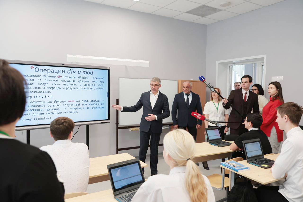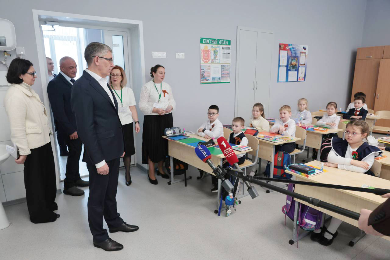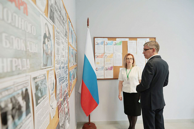 Дмитрий Миляев осмотрел обновленные помещения: столовую, центр детских инициатив, класс начальной школы, библиотеку, кабинеты информатики и ОБЗР, спортивный зал. Также глава региона посетил обустроенный в школе «Уголок героя».