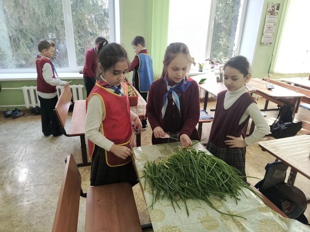 И вот пришло время собирать превосходный урожай свежей зелени. Школьники бережно срезали зеленый лук, а учитель начальных классов Ольга Васильевна Ерёмина высушила и передала его волонтерам «Ясногорской Самоварочки».