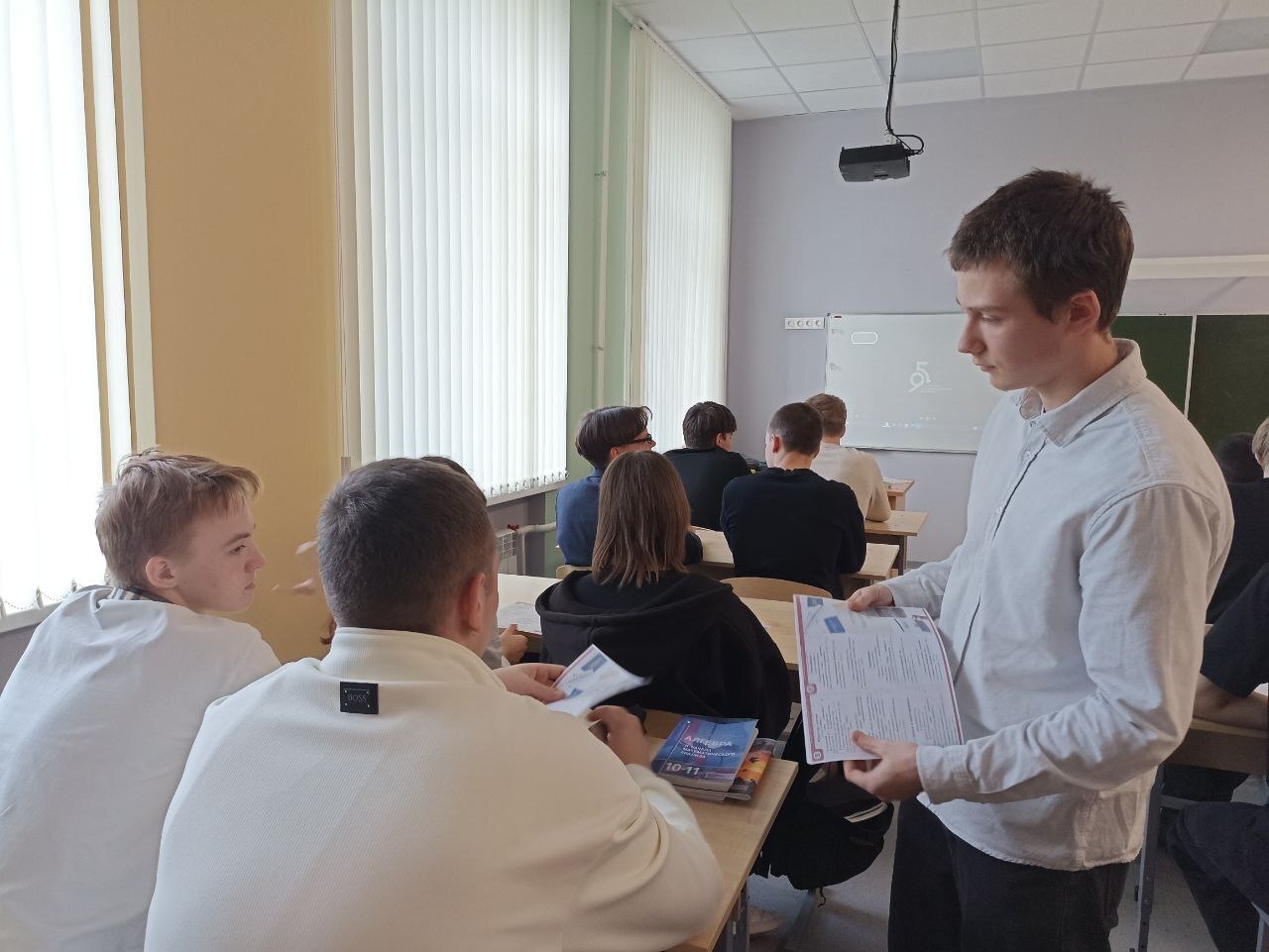 В центре образования № 1 состоялась особенная встреча - к старшеклассникам пришел выпускник этой школы Никита Цыбин, ныне - студент Тульского государственного университета, института права и управления.