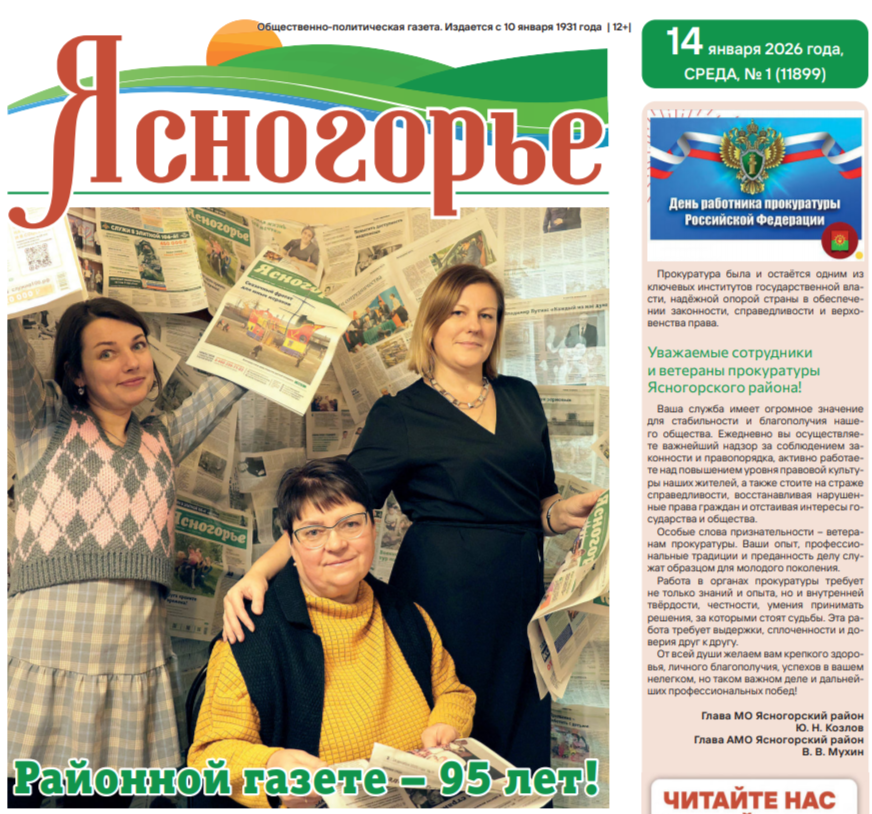 Выпуск № 1 от 14.01.2026 года можно приобрести в магазине "Вишенка" на улице Горького, в продуктовом магазине на улице Заводской (м-н "Альянс"), в продуктовых магазинах поселка Боровковский и села Денисово Ясногорского района, а также в редакции газеты.