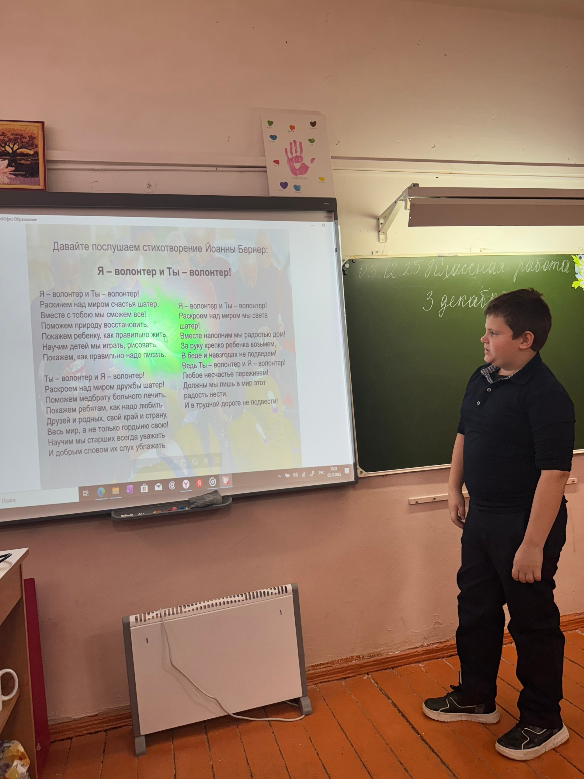 Юные волонтеры - пятиклассники Денисовской средней школы приняли участие в особенном занятии, посвящённом Дню добровольца, который отмечается сегодня, 5 декабря.