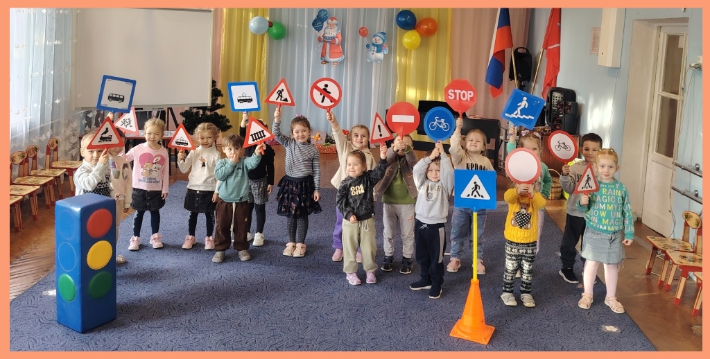 Воспитанники группы "Капельки" в игровой форме закрепили знания о правилах дорожного движения, дорожных знаках, сигналах светофора и различных видах транспорта.