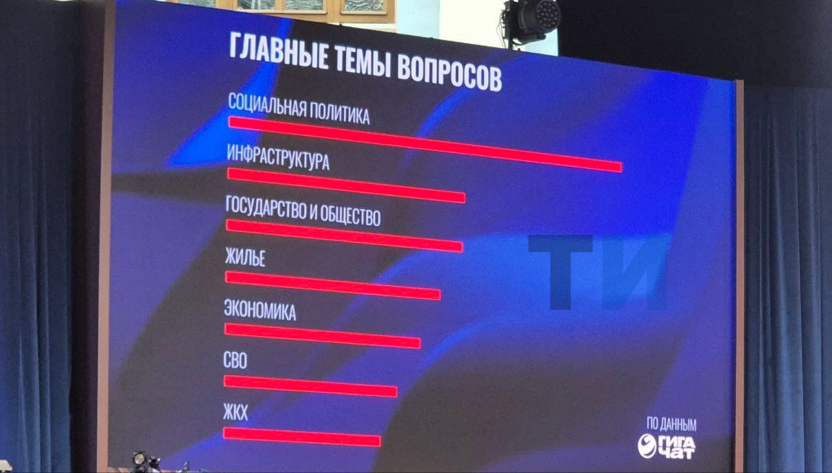 #ИтогиГода На экранах была продемонстрирована инфографика с главными темами вопросов, подготовленная по данным «ГигаЧата».
