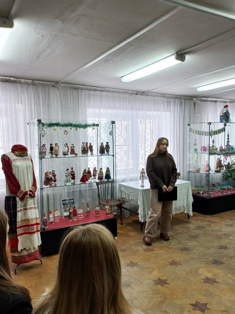 Обучающиеся основной школы города Ясногорска побывали на экскурсии по выставке "Яснополнянские куколки - скелетцы в народных костюмах".