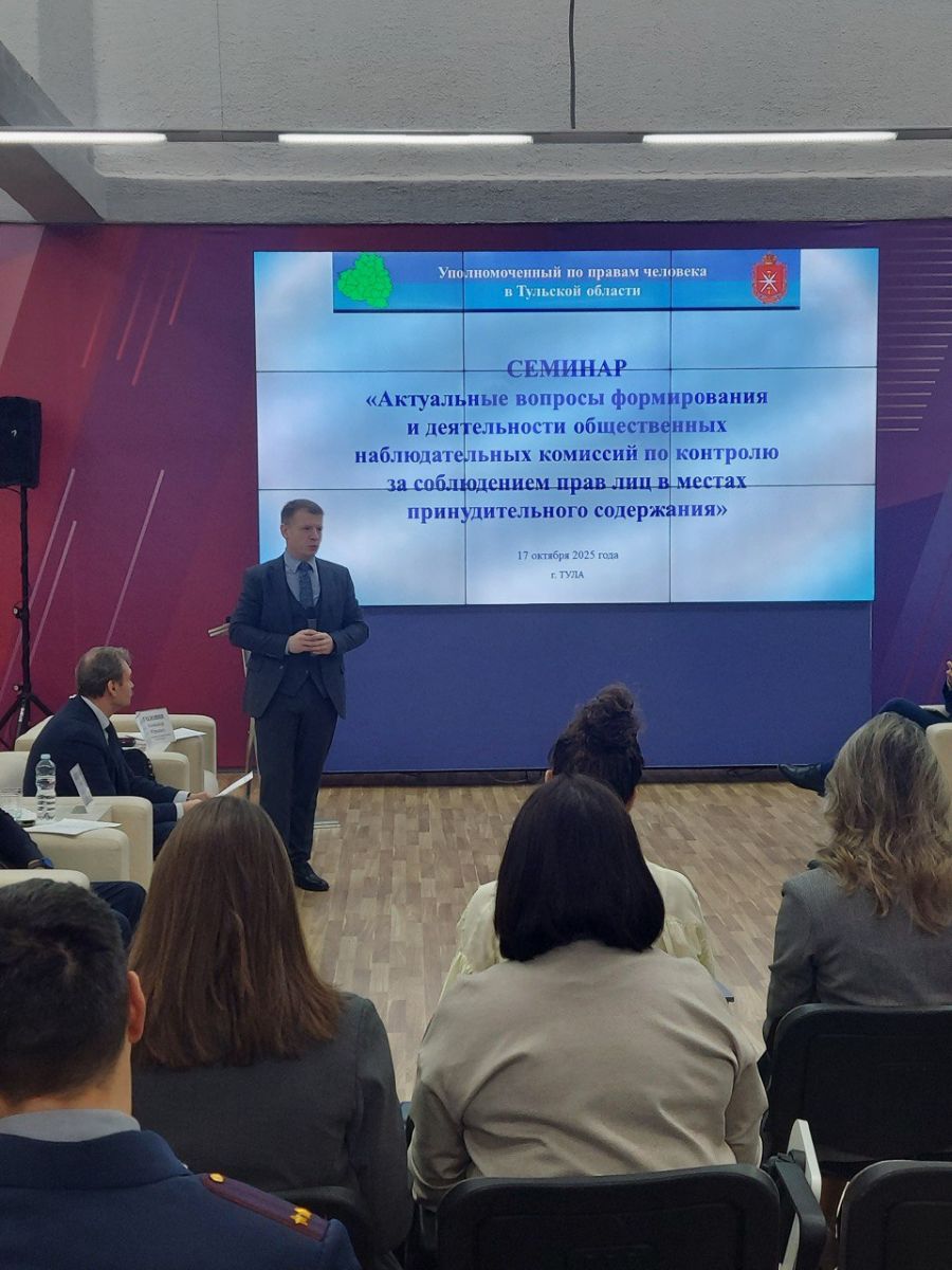 17 октября 2025 года в Туле прошел обучающий семинар на тему «Актуальные вопросы формирования и деятельности общественных наблюдательных комиссий по контролю за соблюдением прав лиц в местах принудительного содержания».