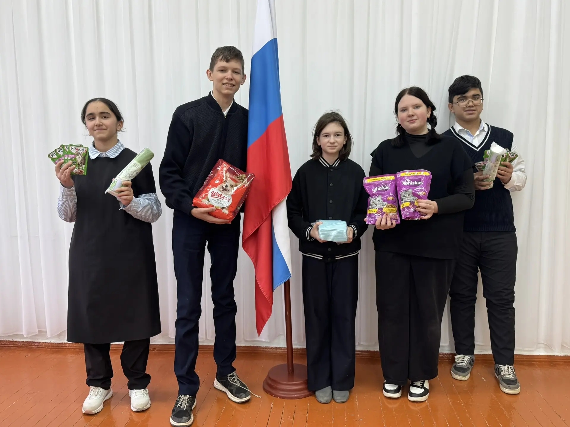 Ребята собрали лакомства и всё необходимое для четвероногих друзей и, прежде всего, для тех, кто недавно перенес операцию или нуждается в особом уходе.