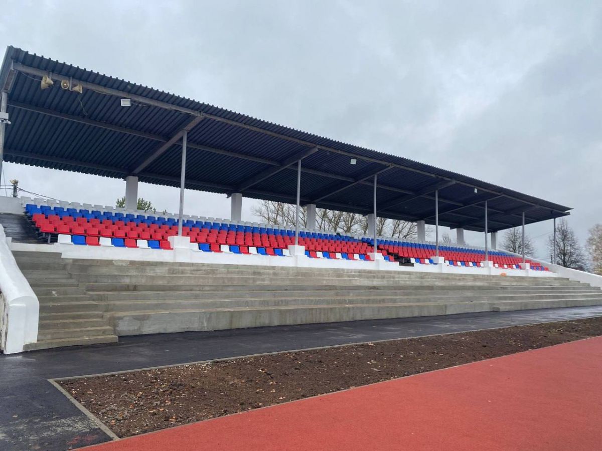 На данный момент выполнено 65% запланированных мероприятий! Сейчас активно занимаются устройством футбольного поля. В ближайшее время планируется завершить работы по беговой дорожке, установить резиновое покрытие и благоустроить территорию.