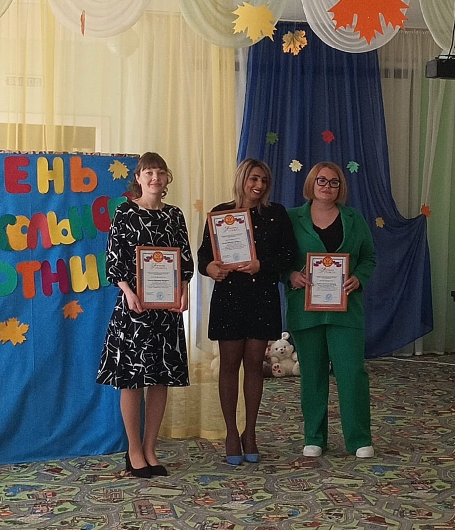 Также за безупречную работу, преданность профессии и вклад в развитие детей и дошкольников вручены почётные грамоты особо отличившимся работникам детского сада - воспитателям Маргарите Викторовне Тимохиной, Кристине Александровне Апостол, помощнику воспитателя Анастасии Борисовне Логвеевой и повару Елене Дмитриевне Фоминой.