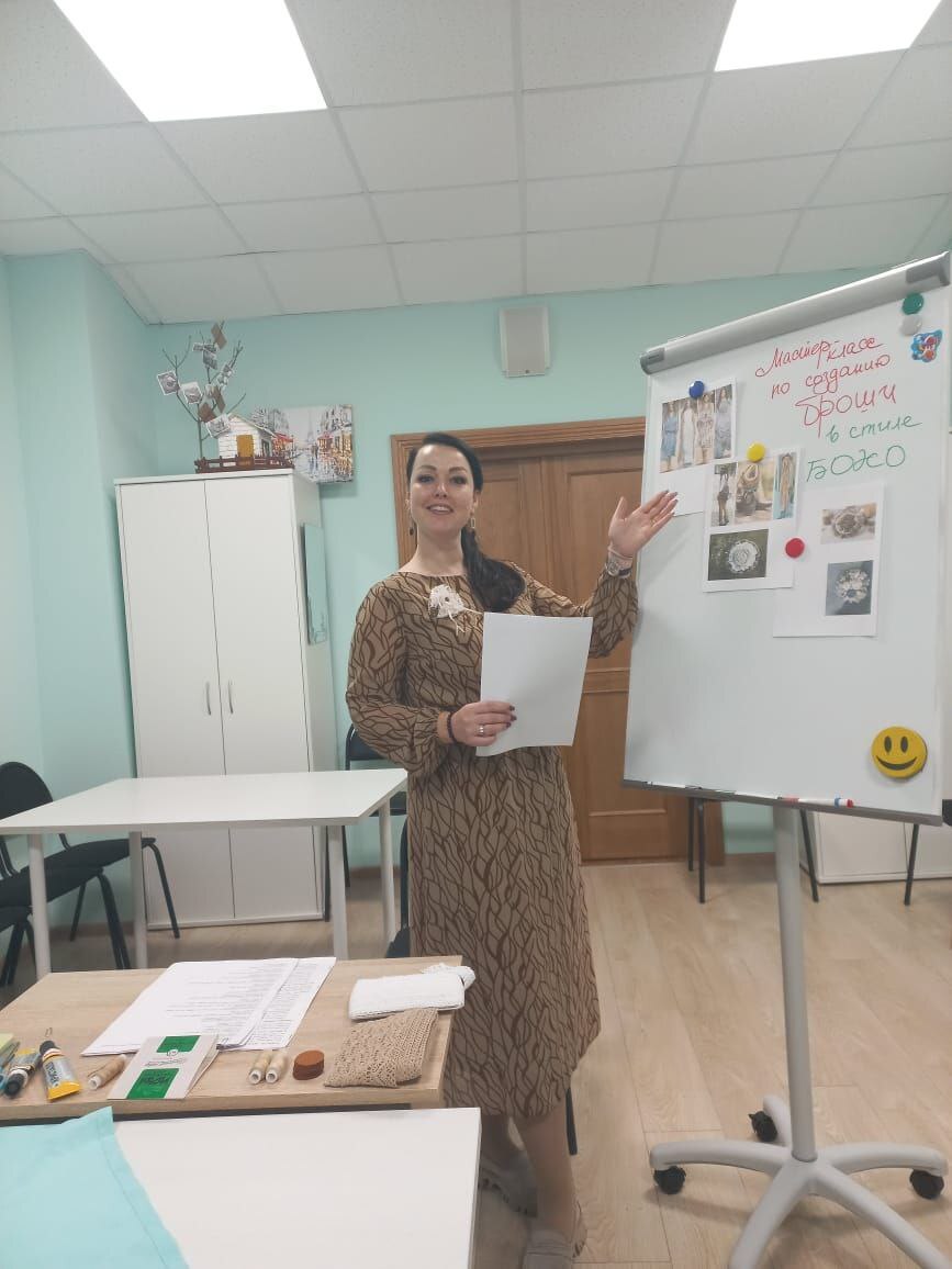Участницы клуба не только познакомились с происхождением и развитием этого трендового направления, но и ответили на вопросы модной викторины, а также сделали своими руками брошь в бохо-стиле.