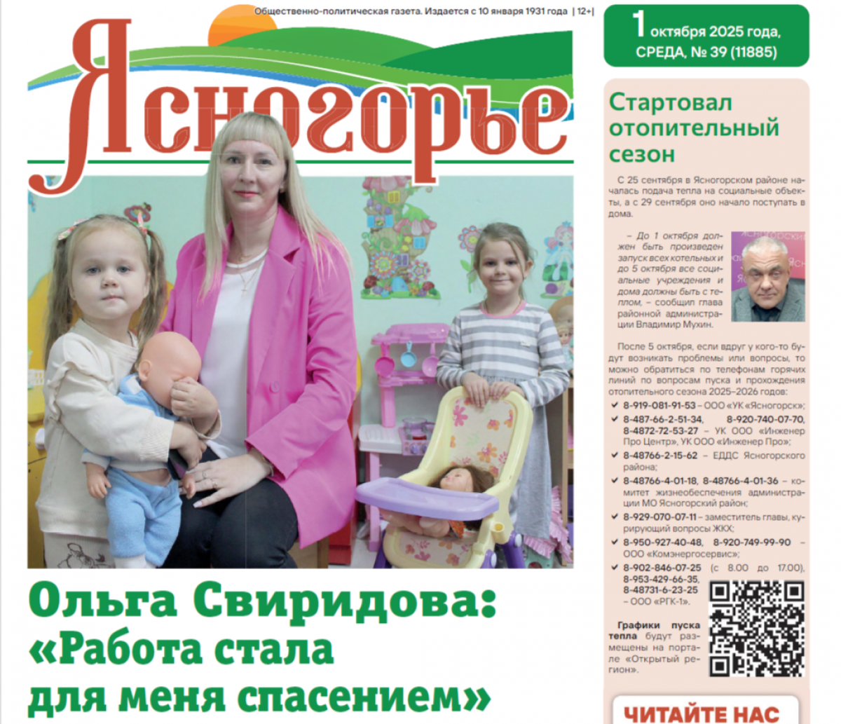 Выпуск № 39 от 01.10.2025 года можно приобрести в магазине "Вишенка" на улице Горького, в продуктовом магазине на улице Заводской (м-н "Альянс"), в продуктовых магазинах поселка Боровковский и села Денисово Ясногорского района, а также в редакции газеты.