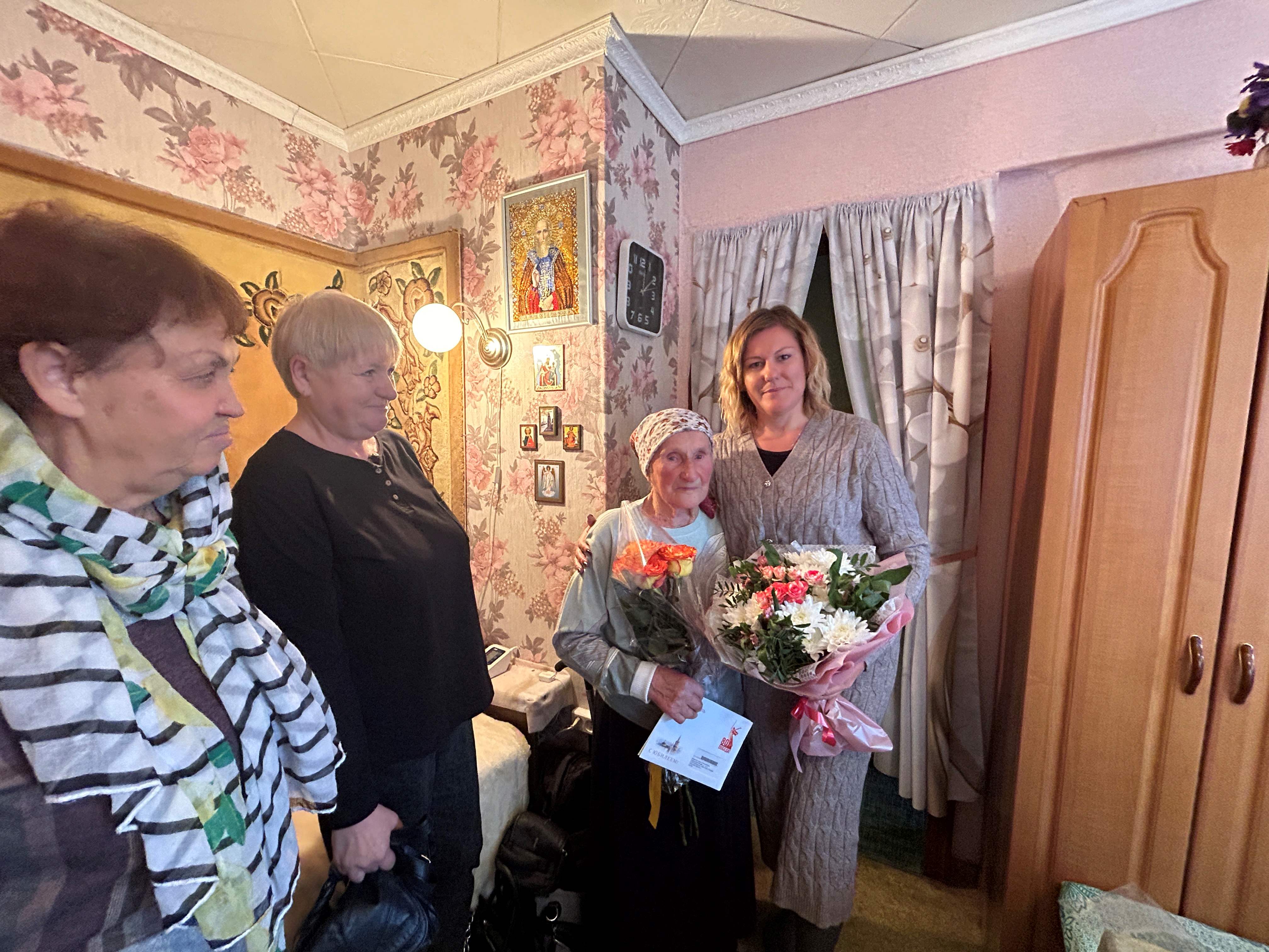 Именно ему и было предоставлено почетное право зачитать для Анны Герасимовны поздравительные слова от Президента страны Владимира Путина и главы региона Дмитрия Миляева.