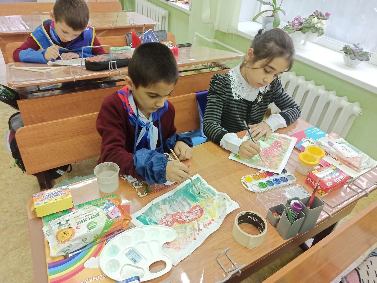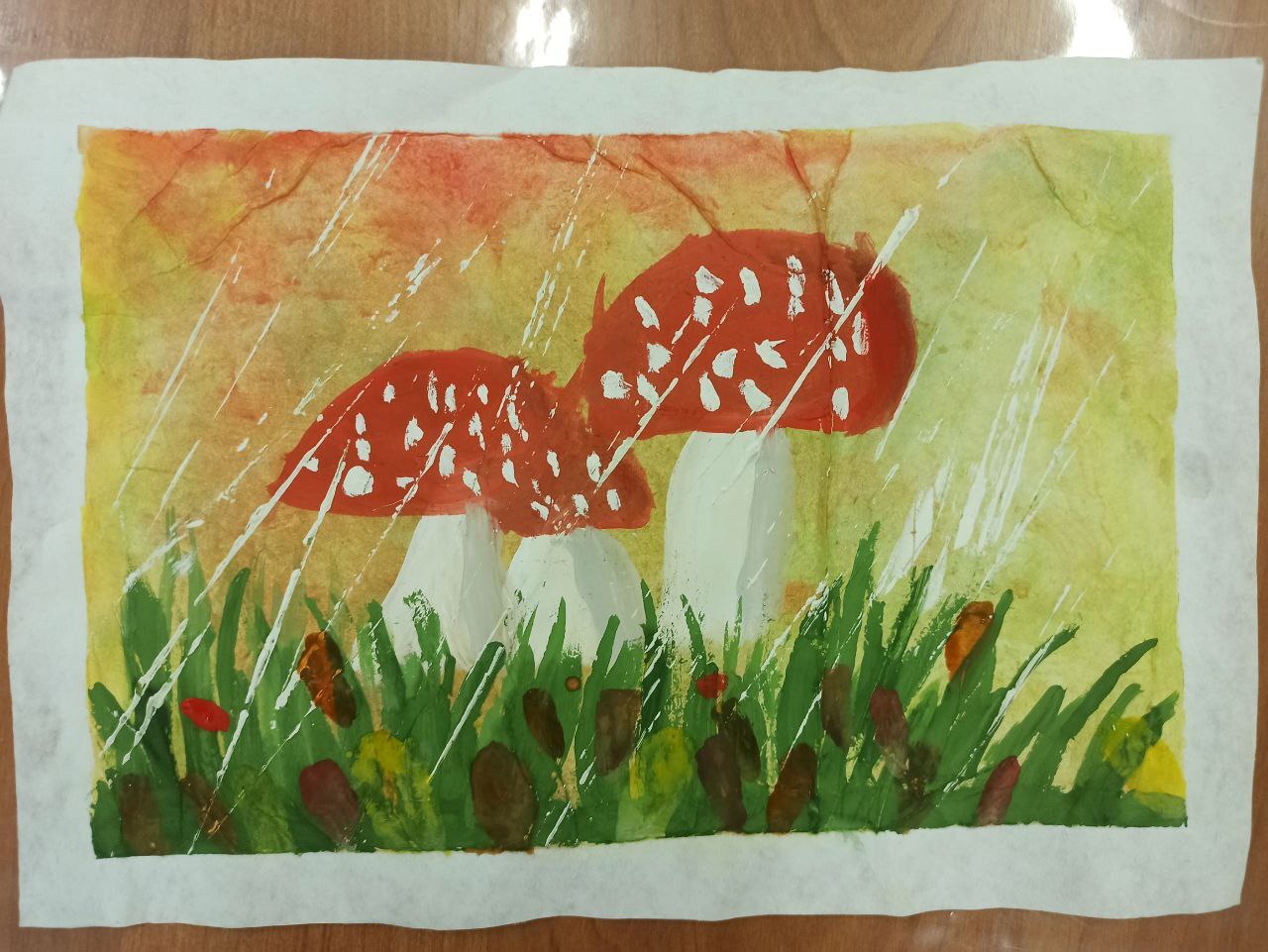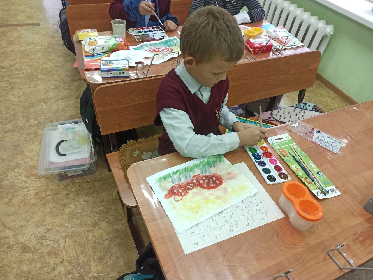 Будущие художники, обучающиеся второго класса Архангельской средней школы им. Д.В. Пилюгина, на уроке изобразительной деятельности познакомились с приёмами работы с гуашью и широкой кистью, научились закрашивать всё пространство листа, а ещё изображать мухоморы.