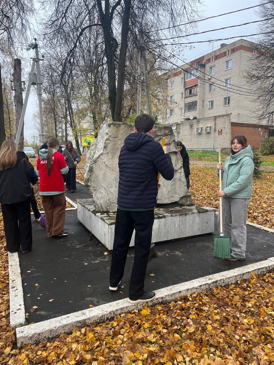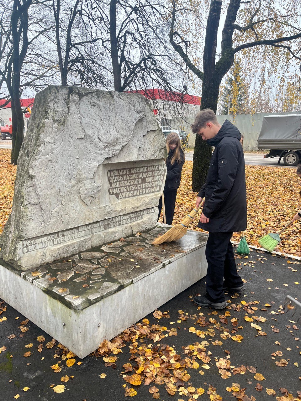 Активисты и волонтеры средней общеобразовательной школы № 3 им. Сергея Ишеева сделали доброе и важное дело: они провели уборку у памятного знака, расположенном на том месте, где в декабре 1941 года размещался штаб Лаптевского боевого участка.