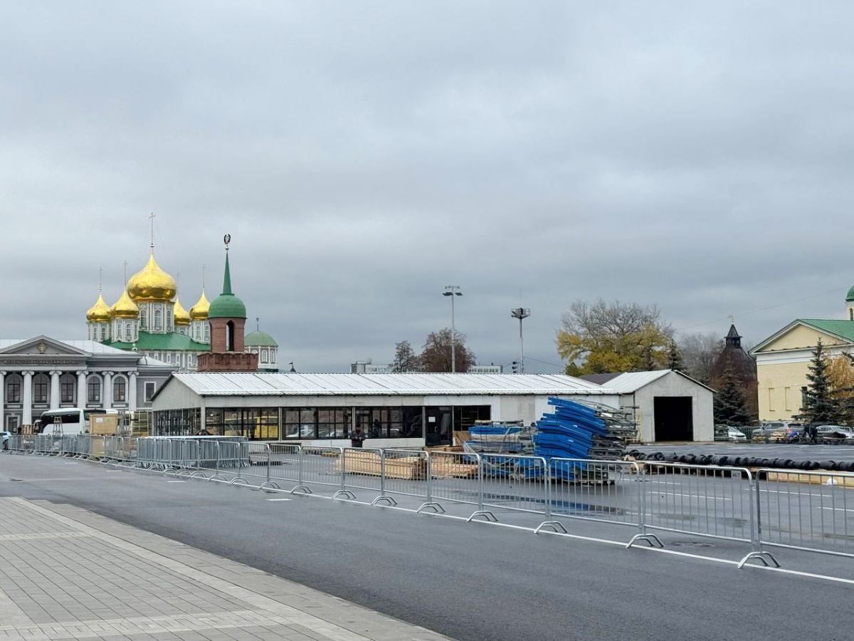 На центральной площади Тулы ведется установка Губернского катка, появилось помещение проката коньков.