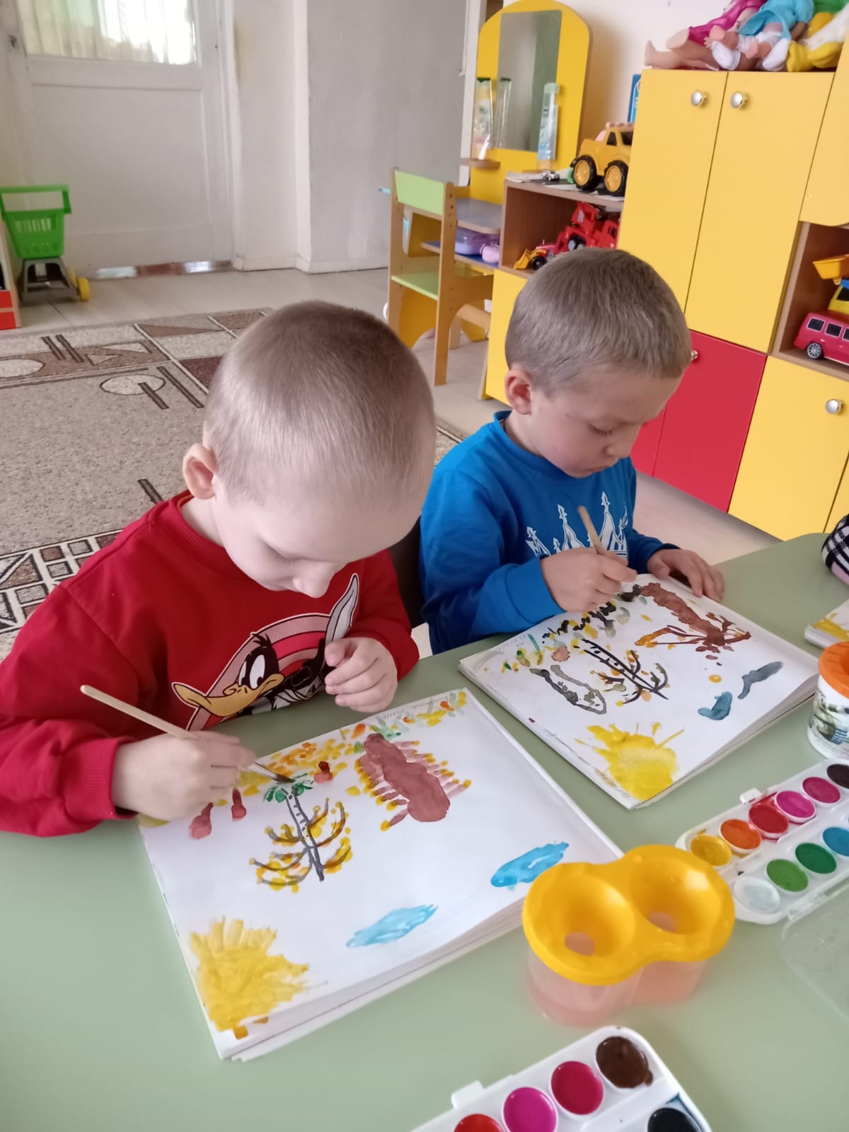 Вот и воспитанники средней группы «Смешарики» детского сада № 7 с удовольствием погрузились в мир осенних красок. Вооружившись кистями, красками, карандашами, восковыми мелками, пластилином, ребятишки изображали осень, передавая свои впечатления.