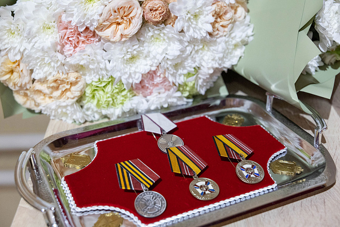 Дмитрий Миляев пожелал военным медикам новых побед, крепкого здоровья, благополучия, успехов во всех начинаниях и вручил ведомственные награды отличившимся военнослужащим.