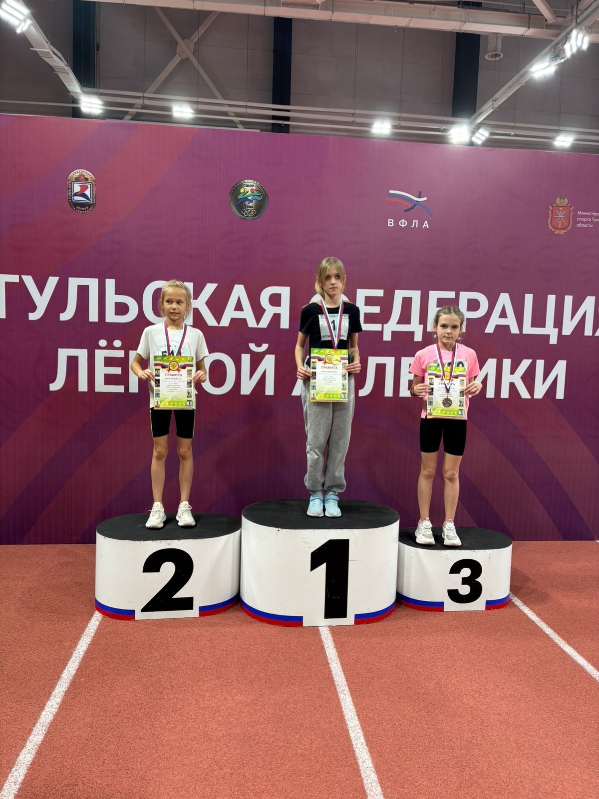 В возрастной группе 2013-2014 г.г.р. в беге на 500м Ксения Тихонова заняла 3 место.