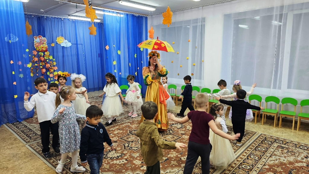 В гости к нашим маленьким землякам - архангельским ребятишкам из дошкольной группы «Гномики» - пришла волшебница Осень, которая принесла с собой замечательные подарки. В вихре листопада закружила она детей в танце.
