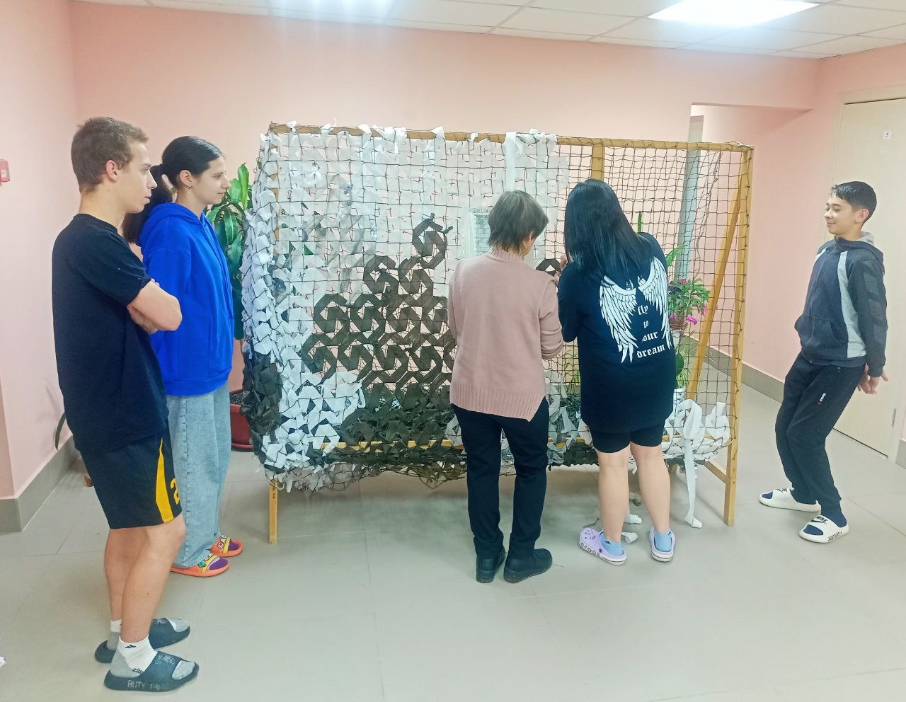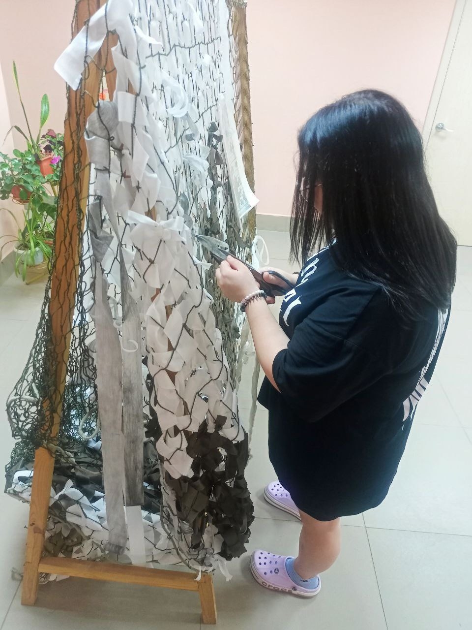 Волонтёры добровольческого объединения "Добрые ручки" провели для них увлекательное занятие по плетению маскировочных сетей, и каждый желающий смог поучаствовать в создании по-настоящему уникальной вещи.