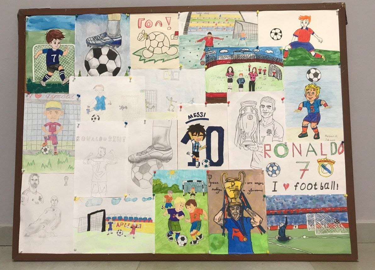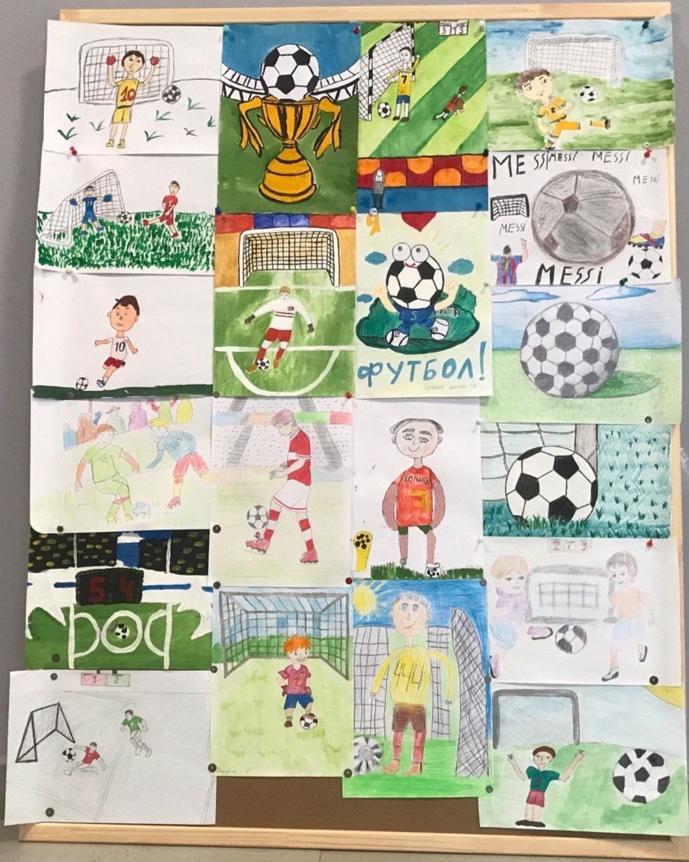 В школе центра образования № 1 города Ясногорска проходит творческий конкурс рисунков, посвящённый самому популярному спорту - футбол.