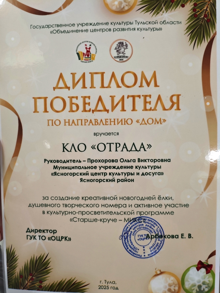 И Ясногорский район признан в числе лучших: вокальный ансамбль “Отрада” Ясногорского центра культуры и досуга завоевал диплом победителя по направлению «Дом»!