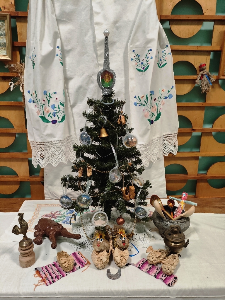 Праздничное настроение всем участникам мероприятия создали арт-объекты выставки «Ёлка-летописец», в экспозицию которой вошла ясногорская новогодняя красавица, украшенная участницами ансамбля в рамках финального направления программы "Дом".