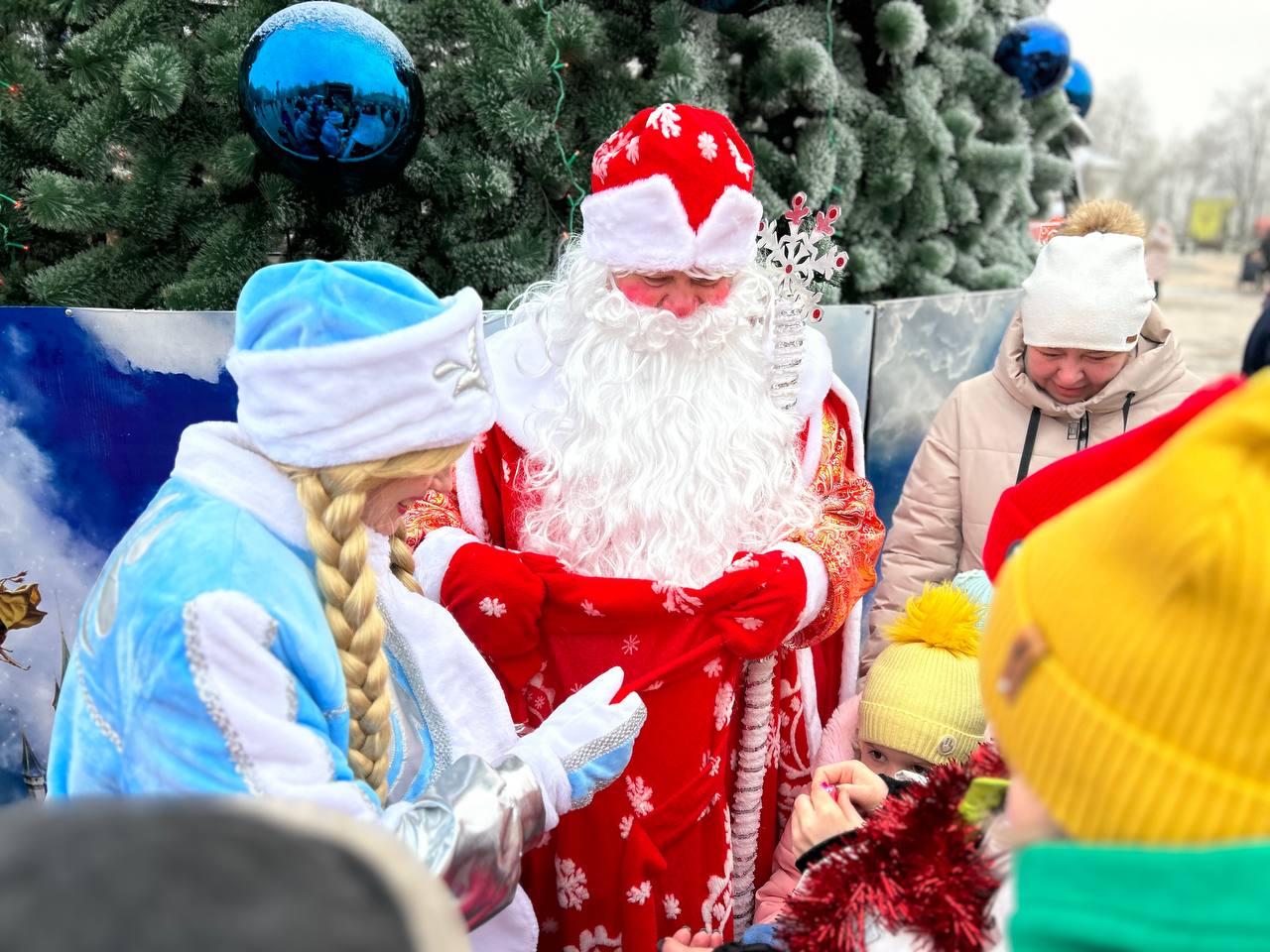 Кульминацией зимнего праздника, состоявшегося на центральной площади города, стало появление долгожданных гостей - Деда Мороза и Снегурочки. Их выход детвора и взрослые встретили громкими аплодисментами и восторженными возгласами.
