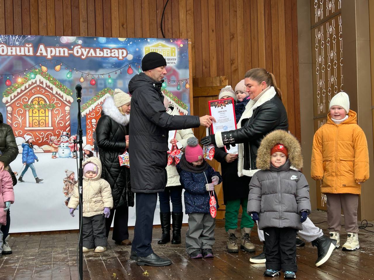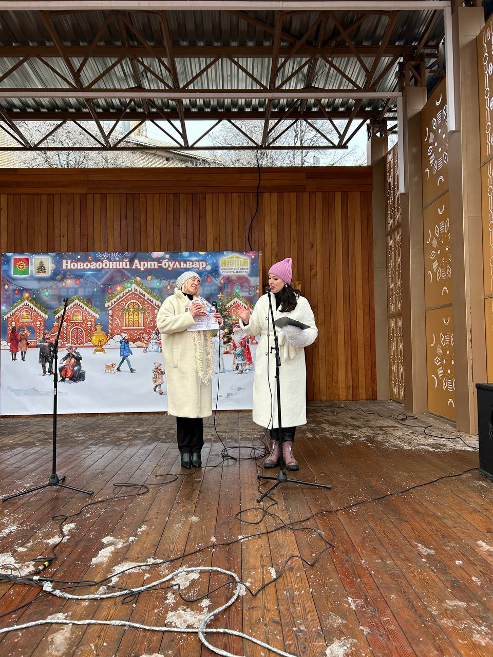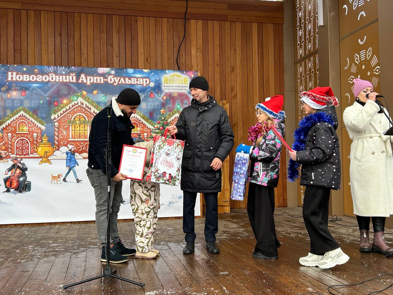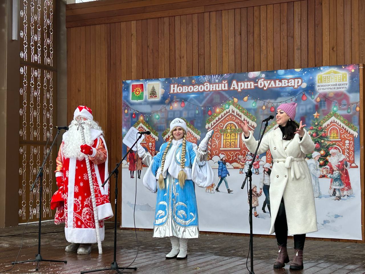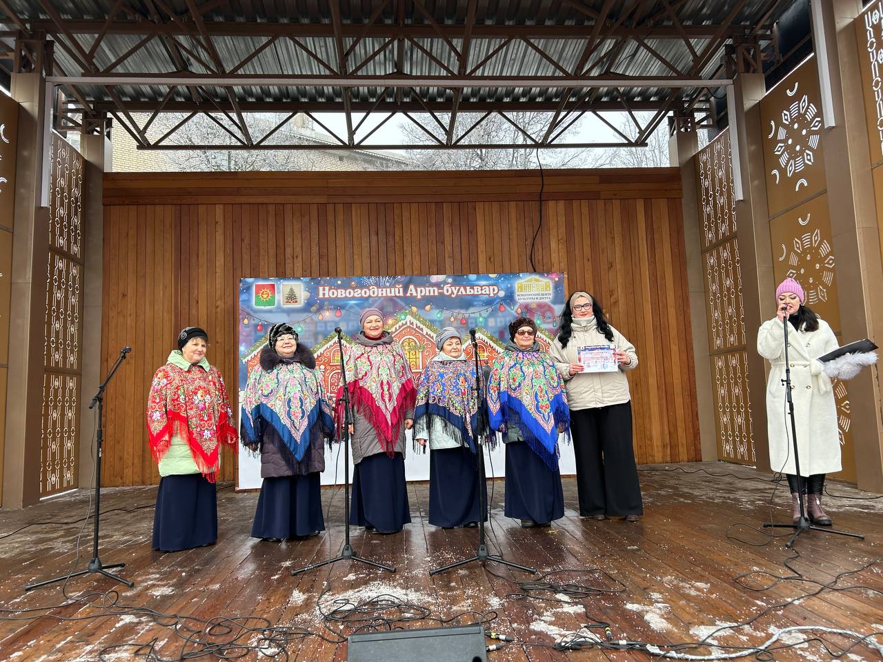 Новогодние песни «Метель метёт», «Валенки», «Ярмарка», «В лесу родилась ёлочка» и другие всеми любимые новогодние хиты, звучащие со сцены, только усиливали предвкушение удивительных чудес, которые всегда случаются в зимнее время.