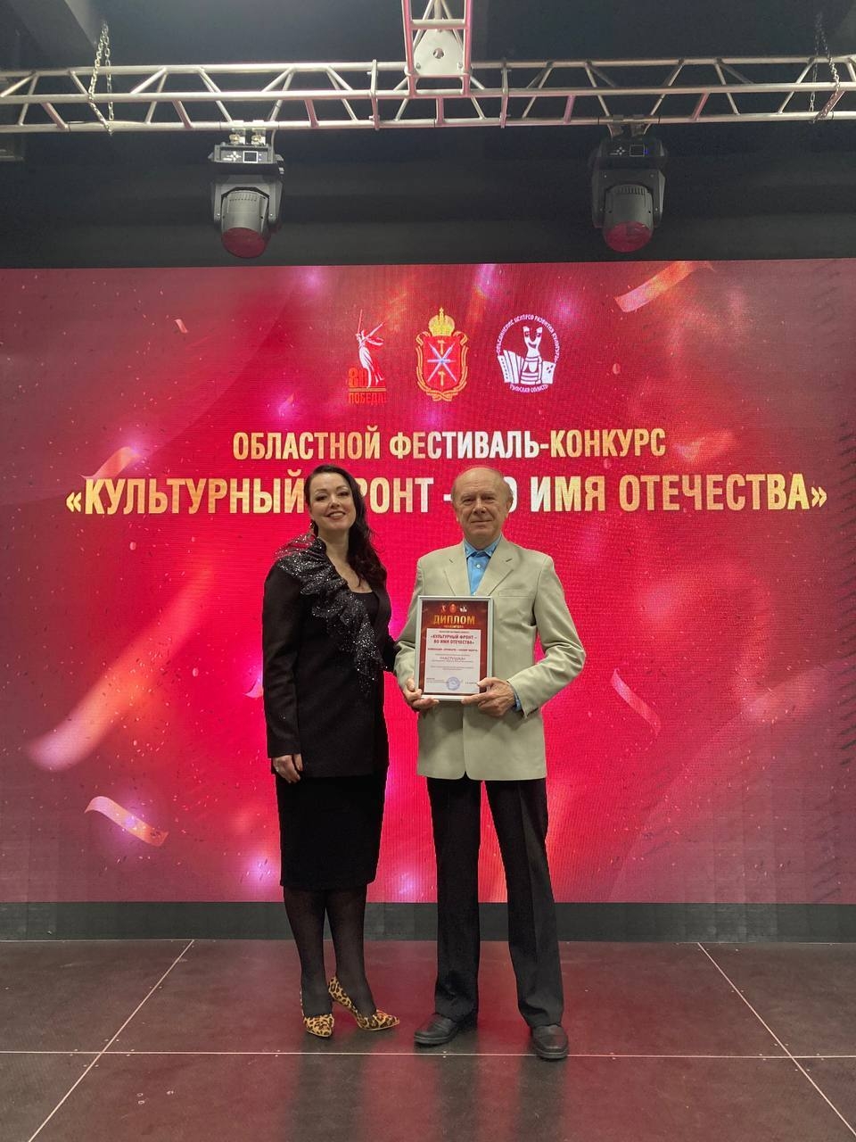 Разделила радость победы в конкурсе и поддержала Виктора Васильевича художественный руководитель Ясногорского центра культуры и досуга Вера Дедело - участница фестиваля «Культурный фронт - во имя Отечества» в номинации «В ногу с героями».