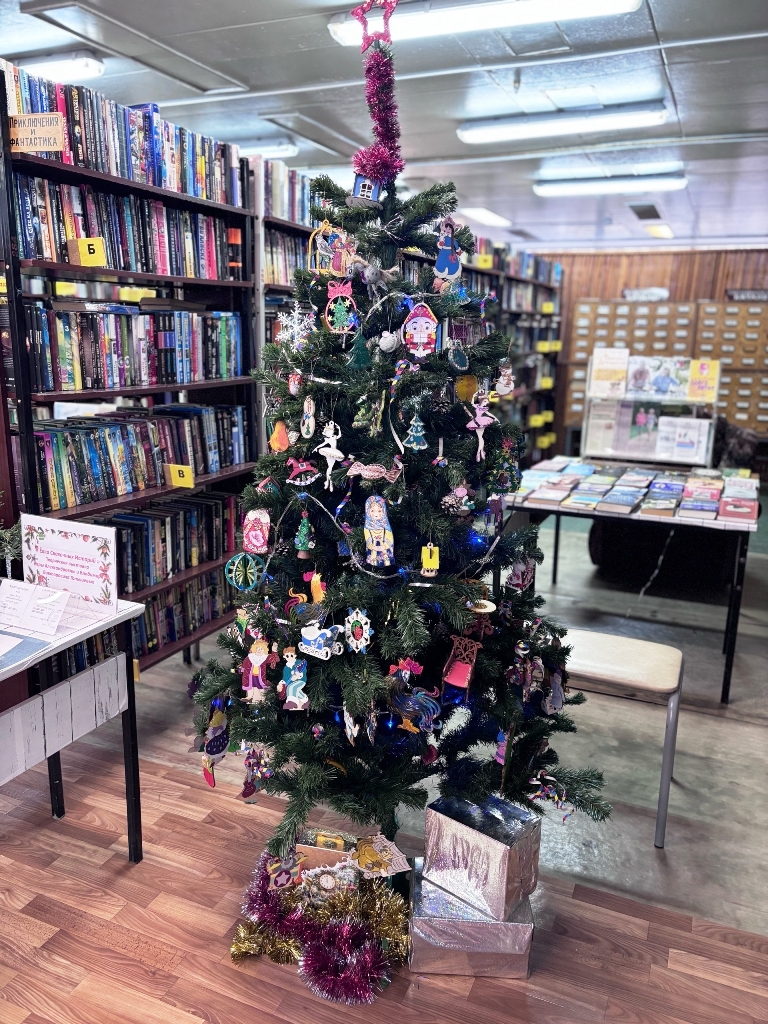 В этом году библиотека приготовила для читателей нечто особенное: здесь всех ждет творческая выставка Веры Александровны и Владимира Викторовича Голышевых "Елка сказочных историй", которая станет настоящим путешествием в мир детства.