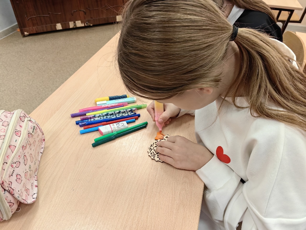 Так, к примеру, учащиеся 5-А класса центра образования № 2, решившие порадовать своих педагогов яркими и необычными подарками, приняли участие в мастер-классе, на котором с увлечением раскрасили ёлочные шарики.