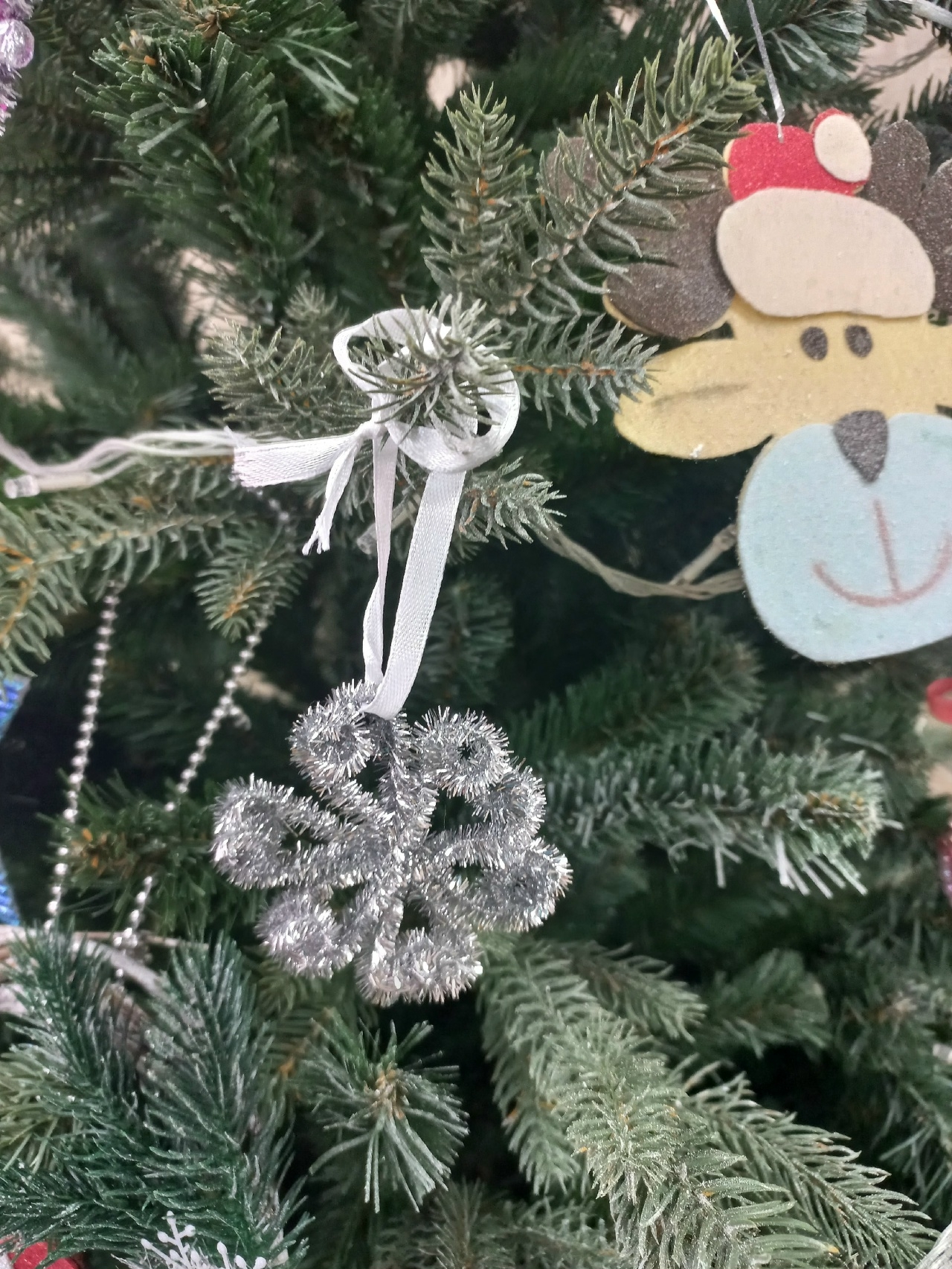 Работники музея не вставали на стульчик, не читали стихи, не пели песенки. Но подарки им вручили, и не только сладкие. Теперь музейную ёлку украшает снежинка, сделанная руками юных волшебников - волонтёров из отряда "Оптимисты" Основной школы города Ясногорска.