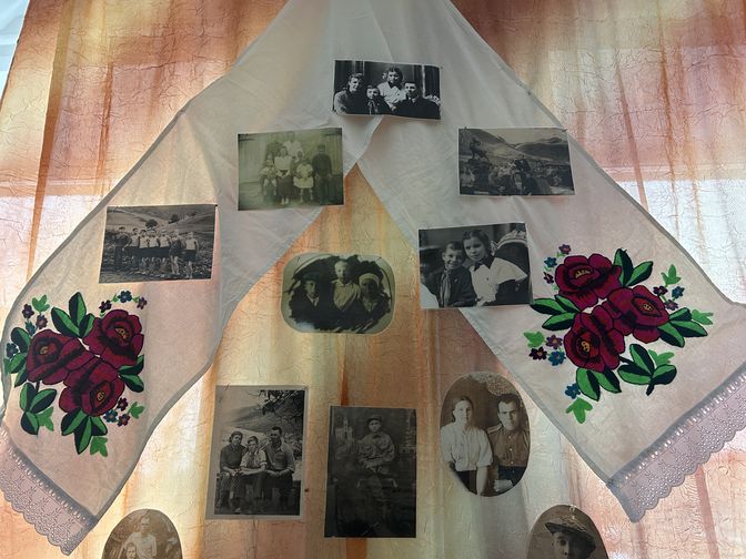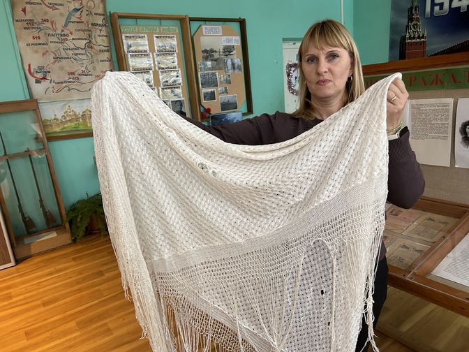 Эту портупею своего прадеда принёс нам школьный фотограф… А это шаль моей прабабушки - она сороковых годов, - продолжает свой рассказ Светлана Левченко.